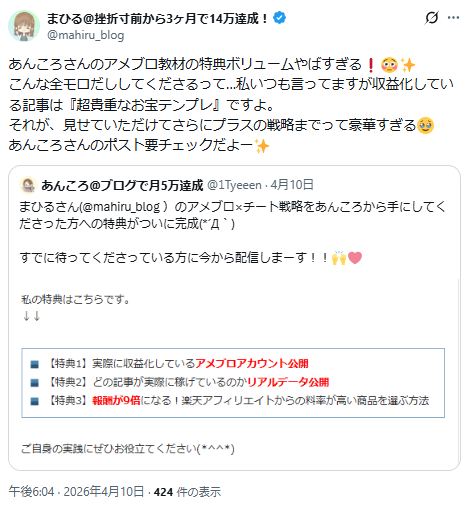 まひるさんは、ご自身でブログ収益を最高月収14万円まで伸ばし