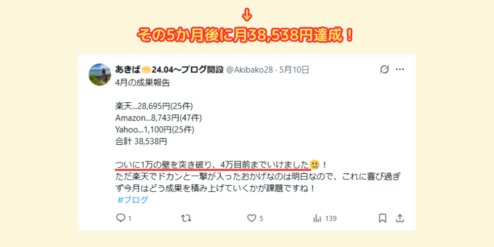 ブログで1万円稼いでしまえば、3万、5万、10万はその積み重ねと継続で達成できることが多いんです。