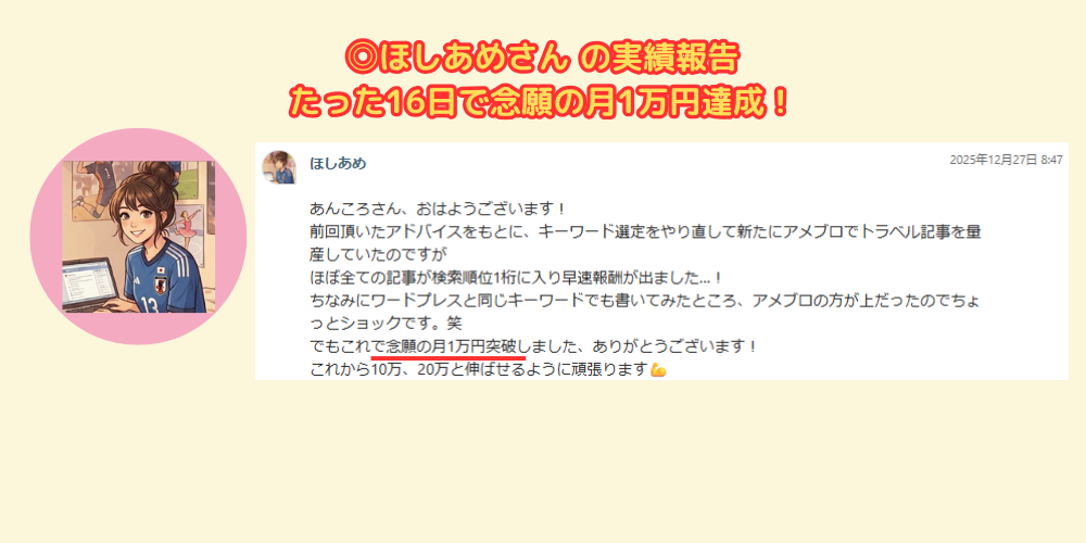 実際にあんころの特典やサポートを活用して成果を出された方たちのご紹介をしますね。